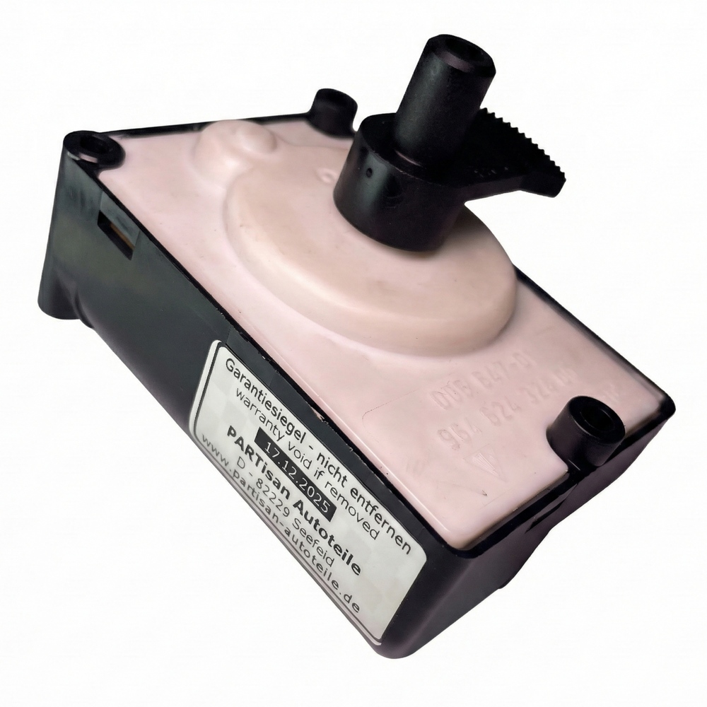 This product is a fully remanufactured actuator for the defrost flap control in the 964/993 models. As part of the service, all wear parts (motor, sliding contacts, circuit board) are replaced with high-quality components using modern technology. This requires that the housing is undamaged and that no previous repair attempts have been made. We will ship the remanufactured actuator to you on the same day we receive your old part. This product comes with our 2-year warranty.